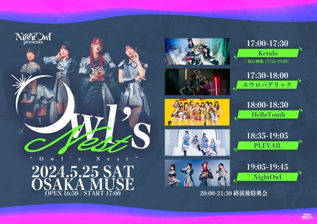 NightOwl / エウロパデリック / Ketulo / PLEVAIL / HelloYouth