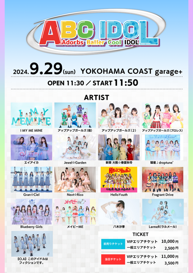 I MY ME MINE/アップアップガールズ(仮)/アップアップガールズ(2)/アップアップガールズ(プロレス)/エイアイカ/Jewel☆Garden/新章 大阪☆春夏秋冬/彗星♩droptune° /Gran☆Ciel/Next☆Rico/HelloYouth/Fragrant Drive/Blueberry Girls/メイビーME/八木沙季/LarmeR(ラルメール)/【O.A】このアイドルはフィクションです。